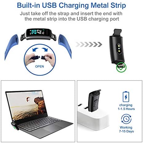 【Eingebauter USB-Ladeanschluss &Lange Akkulaufzeit】Mit einem High-End Handy-LCD-Bildschirm, ist die Bildschirmintensität heller! Es ist kein zusätzliches Ladegerät erforderlich, entfernen Sie einfach die armband und stecken Sie das Ende mit dem Metallband in den USB-Ladeanschluss,um aufzuladen. Benötigt nur 1-2 Stunden, um vollständig aufzuladen und dauert bis zu 7-15 Tage Standby.