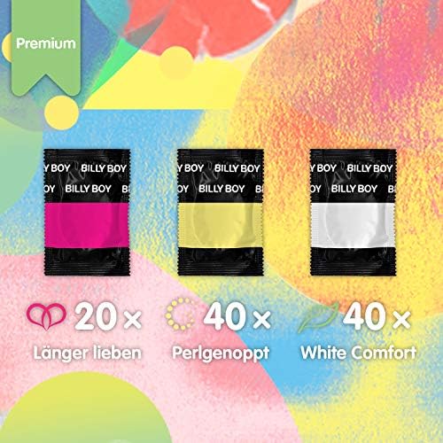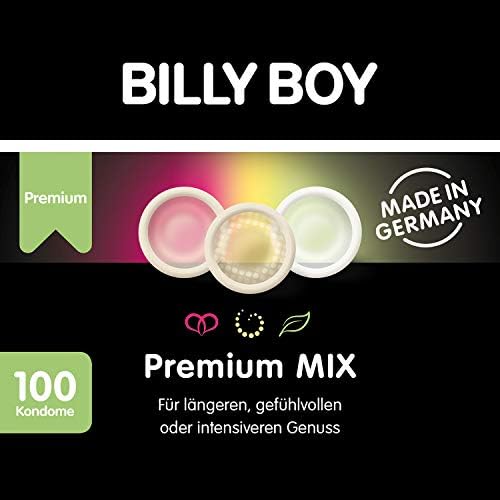 Billy Boy Premium Mix – langanhaltendes liebeserlebnis, unbeschwerter Genuss oder intensivere Stimulation. Ganz nach Gefühl! Ob zarte perlnoppen, festerer Sitz oder mehr Freiraum mit zartem Duft. Der Billy Boy Premium Mix bietet die perfekte Auswahl für ein genussvolles liebeserlebnis! Billy Boy ist eine Qualitätsmarke – langjährige Herstellerkompetenz kombiniert mit hoher Produktqualität! Alle Billy Boy Kondome aus Naturkautschuk sind „Made in Germany“ Und einzeln elektronisch geprüft. Billy Boy bietet alles, was anmacht und unterstützt das Liebesspiel aufregend anders.