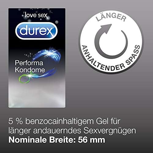 Lieferumfang: 1 x 14 „Performa“ Kondome von Durex / Länger durchhalten beim Sex dank benzocainhaltigem Gel in der Kondomspitze – für ausgiebige, sinnliche Stunden zu zweit