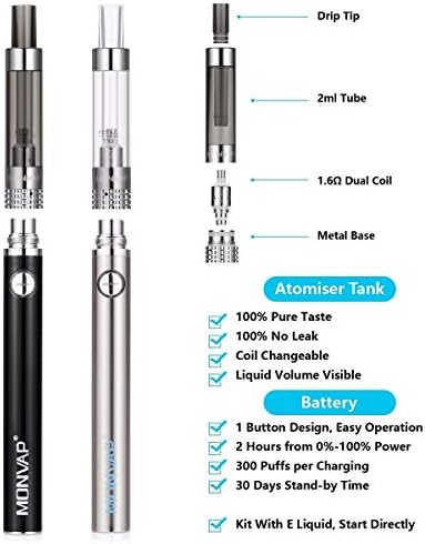 Gewinde: 510 GewindeFlüssigkeitskapazität: 2mlVerdampferköpfe: 1,6ohmSpule Austauschbar VerdampferPurer Geschmack, Kein Leck
