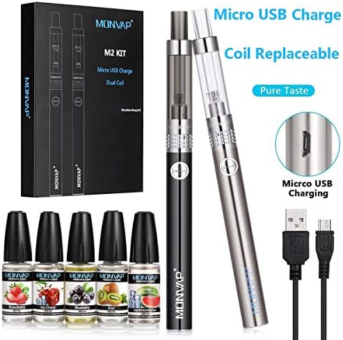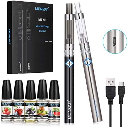 【M2 Starterset Lieferumfang】2x EVOD Akku + 2x Verdampfer 2.0ml + 1x USB Ladekabel + 1x Benutzerhandbuch,+ 5x10ml E-Liquid Ohne Nikotin (Erdbeere, Eis Kirsche, Blaubeere, Kiwi, Eis Wassermelone)