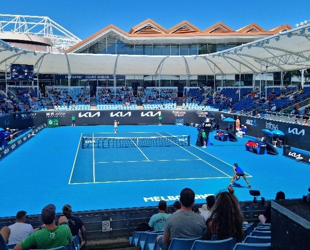 Und die Action ging den ganzen Tag über weiter. Die Australier Ajla Tomljanovic besiegten den Japaner Misaki Doi und der Publikumsliebling Nick Krygios sorgte dafür, dass die grün-gold gekleideten Fans gegen den Portugiesen Frederico Ferreira Silva antraten.