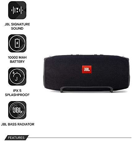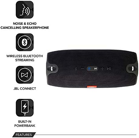 Kraftvoller Klang, jetzt auch tragbar. JBL Xtreme ist der ultimative, tragbare Bluetooth-Lautsprecher. Mit seinen vier aktiven Signalumwandlern und zwei Bass-Strahlern von JBL liefert er kraftvollen, bebenden Stereo- Klang. Mit seinem massiven, wiederaufl adbaren 10.000mAh-Lithium-Ionen-Akku hält der Lautsprecher mühelos Deine Musik und Deine Geräte so lange im Gang, wie Du es gerne haben möchtest. der ausreichend Leistung für 15 Stunden voller Musikgenuss bietet sowie seinen dualen USB-Ladeanschluss, Verlasse Dich darauf: mit seinem spritzwasserfesten Design (in schwarz, blau oder rot) erzeugt der JBL Xtreme puren Genuss immer wenn Du es brauchst – in Deiner Wohnung, in freier Natur, direkt am Pool oder auf der Grillparty. Zudem verfügt der Xtreme über eine Geräusch- und Echounterdrückungsfunktion für kristallklare Telefonate, sowie über JBL Connect für die drahtlose Verbindung mehrerer JBL Connect-fähiger Lautsprecher und ein noch intensiveres Musikerlebnis.Haupteigenschaften:-Streaming via Bluetooth 4.1-Freisprechfunktion-Spritzwasserfest-JBL Connect-Ladezeit: 3 Stunden-Lithium-Ionen-Polymer AkkuTechnische Daten Produkt-Features Sounddocks -Feature1: bluetooth Art -Anzahl Lautsprecher: 1 Konnektivität -Bluetooth: Ja -NFC: Nein Ausstattung -Speicherkarten-Steckplatz: Nein -Dockingstation: Nein Leistung -Nennleistung (Watt): 2 x 20 -Frequenzgang (Hz): 70 – 20.000 Anschlüsse -AUX-Eingang / 3,5 mm Klinke: Nein Energieversorgung -Energieversorgung: Akku -Batterie- / Akkutyp: Lithium-Polymer -Max. Musik-Wiedergabe (Std.): 15 Allgemein -Magnetisch abgeschirmt: Nein -Farbe: schwarz -Breite (mm): 283 -Höhe (mm): 126 -Tiefe (mm): 122 –