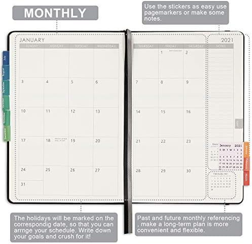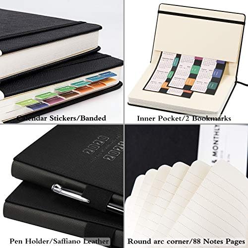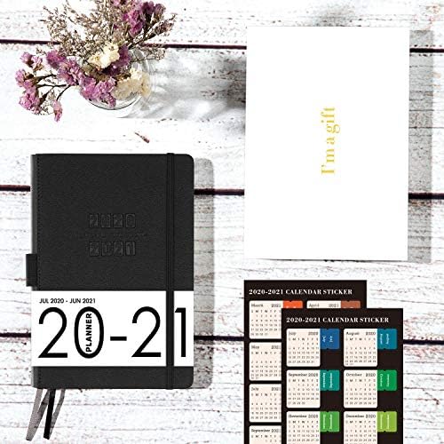 Terminkalender-Praktische Innentasche | 2020/2021 Kalenderaufkleber | Jahresübersicht | Exquisite Geschenkbox | Elastischer Verschluss | Qualität Stiftschlaufe | 2 Lesezeichen