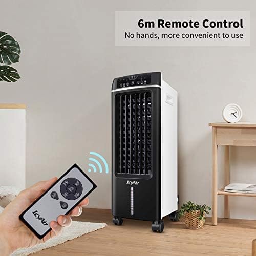 【Einfach zu bedienen】] Aufgrund der Räder und Griffe kann sich der Luftkühler im Raum frei bewegen und ist mit einer Fernbedienung ausgestattet, die sehr praktisch ist. Inklusive Feststellbremsen für Sicherheitsfundamente.