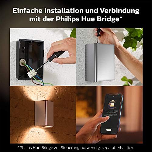 Smarte Lichtsteuerung für Ihren Außenbereich: Die Hue Wandleuchte Resonate lässt sich einfach in ein bestehendes Hue System integrieren. Für die Steuerung ist die Hue Bridge erforderlich (nicht im Lieferumfang enthalten)