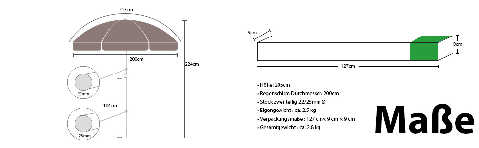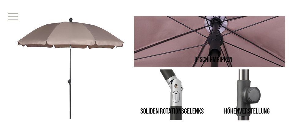 Einfacher Auf- und Abbau , platzsparend. Bitte beachten Sie, dass kein Ständer bzw. keine Beschwerung von dem Schirm mitgeliefert wird.