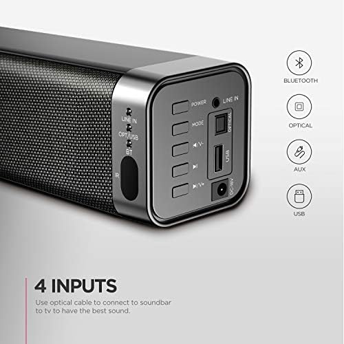【Vielseitige Konnektivität】Die BOMAKER 2.0 Kanal Soundbar verfügt über 4 Eingänge wie USB,AUX,optischer Anschluss und Bluetooth.Verbesserte 5.0 Bluetooth-Funktion, für Musik Streamen nach Lust und Laune,kann effektive Verbindungsentfernung 10m erreichen.