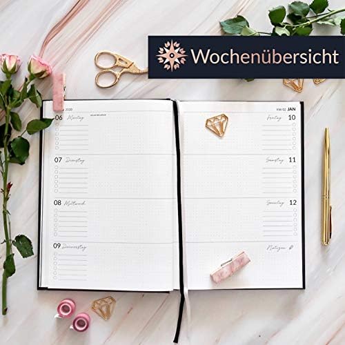 ✅ PREMIUM QUALITÄT: Der DIN A5 Terminplaner kommt mit einem stabilen Hardcover mit einem glänzenden Aufdruck, 2 Lesebändchen und hochwertigem Papier.