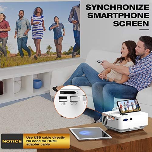 【Bequemer USB-Anschluss & Smartphone-Bildschirm synchronisieren】-Verbinden Sie Ihre Geräte und den Projektor mit nur einem USB-KABEL für Android- oder iOS-System, wodurch der herkömmliche Lightning-zu-HDMI-Adapter/MHL-zu-HDMI-Adapter für den Anschluss eliminiert wird.Dadurch sparen Sie viel Geld für den Kauf eines herkömmlichen HDMI-Adapters.Es löst auch das Problem der instabilen Verbindung über WIFI und Einschränkungen hinsichtlich des Einsatzortes und des Signalverlusts.
