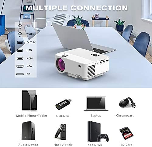 【Multimedia-Verbindung】- Die Schnittstelle umfasst HDMI/ USB/ VGA/ AV/ Micro SD-Karte/ Audioausgang 3,5 mm. Kompatibel mit Amazon Fire TV-Stick/Smartphones/Tabletts/TV/Laptop/USB-Sticks/TF-Karten (max. 32 GB)/DVD-Player. Aus urheberrechtlichen Gründen unterstützt unsere Spiegelanzeigefunktion keine geschützten Videos von Netflix, Amazon Prime und Hulu.